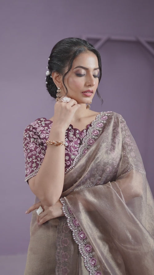 Nayoora Fendy Two-Tone Satin Embroidered Saree Nayoora Fendy Two-Tone Satin Embroidered Saree