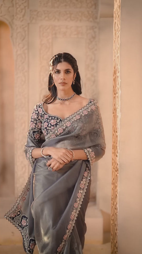 Nayoora Amber Bloom Organza Mirror Saree -